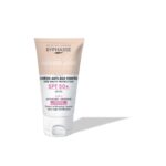 Η αντιγηραντική κρέμα ημέρας SPF 50+ προσφέρει πολύ υψηλή αντηλιακή προστασία UVB-UVA.