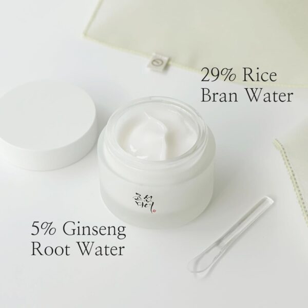 Η κρέμα προσώπου Dynasty της Beauty of Joseon είναι εμποτισμένη με εκλεκτά φυσικά συστατικά, όπως το νερό ρυζιού (29%), νερό ρίζας ginseng (5%), σκουαλάνη (2%), νιασιναμίδη (2%), ενώ περιέχει και 3 τύποι υαλουρονικών οξέων, έλαιο σπόρου Safflower, μέλι, εκχύλισμα φρούτων Chinense, Ceramide NP. Τα πλούσια και υψηλής ποιότητας θρεπτικά συστατικά που περιέχει προσφέρουν ενυδάτωση σε βάθος, θρέψη και λάμψη.