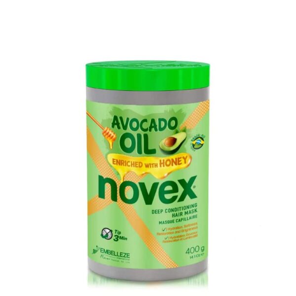 - Η μάσκα μαλλιών Novex Avocado καθαρίζει τα μαλλιά χωρίς να διαταράσσει τα φυσικά έλαια της τρίχας και αφήνει τα μαλλιά φρέσκα και ενυδατωμένα, ενώ το Novex Avocado Conditioner παρέχει στα μαλλιά τα θρεπτικά συστατικά που χρειάζονται ενώ παράλληλα ενυδατώνει. Εμπλουτισμένο με λάδι αβοκάντο και μέλι, θρέψη, λάμψη, απαλότητα.