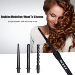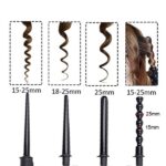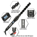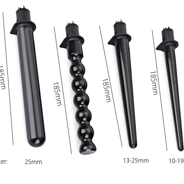 Διαθέτει 4 διαφορετικά αποσπώμενα εξαρτήματα για δημιουργία διαφορετικού τύπου μπούκλας, εκ των οποίων 2 με κωνικό σχήμα για χαλαρές και σφικτές μπούκλες ανάλογα τη χρήση (13mm, 25mm) και εξάρτημα για κύματα.